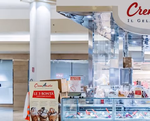 Un Amore di gelato CremAmore è il gelato fatto con le semplici regole della tradizione artigianale italiana e un’autentica passione per fare le cose buone e sane. Trasparenza, grazie al laboratorio annesso al punto vendita, latte fresco Alta Qualità, panna fresca, frutta fresca e basi naturali senza conservanti né coloranti o grassi idrogenati. I gelati prodotti utilizzano solo materie prime di assoluta qualità, che parlano del nostro Amore per i sapori genuini: Pistacchio Verde di Bronte IGP, Nocciola Tonda Trilobata del Piemonte IGP, Limone di Sorrento IGP e tante altre eccellenze delle nostre terre. L’offerta è composta da oltre cento gusti interpreti del variare delle stagioni e da tramezzini gelato, semifreddi, mignon oltre che da prodotti di caffetteria: dal caffè espresso 100% arabica Illy, alla cioccolata realizzata sciogliendo in latte fresco alta qualità gocce di cioccolato fondente, a prodotti di caffetteria elaborata.
